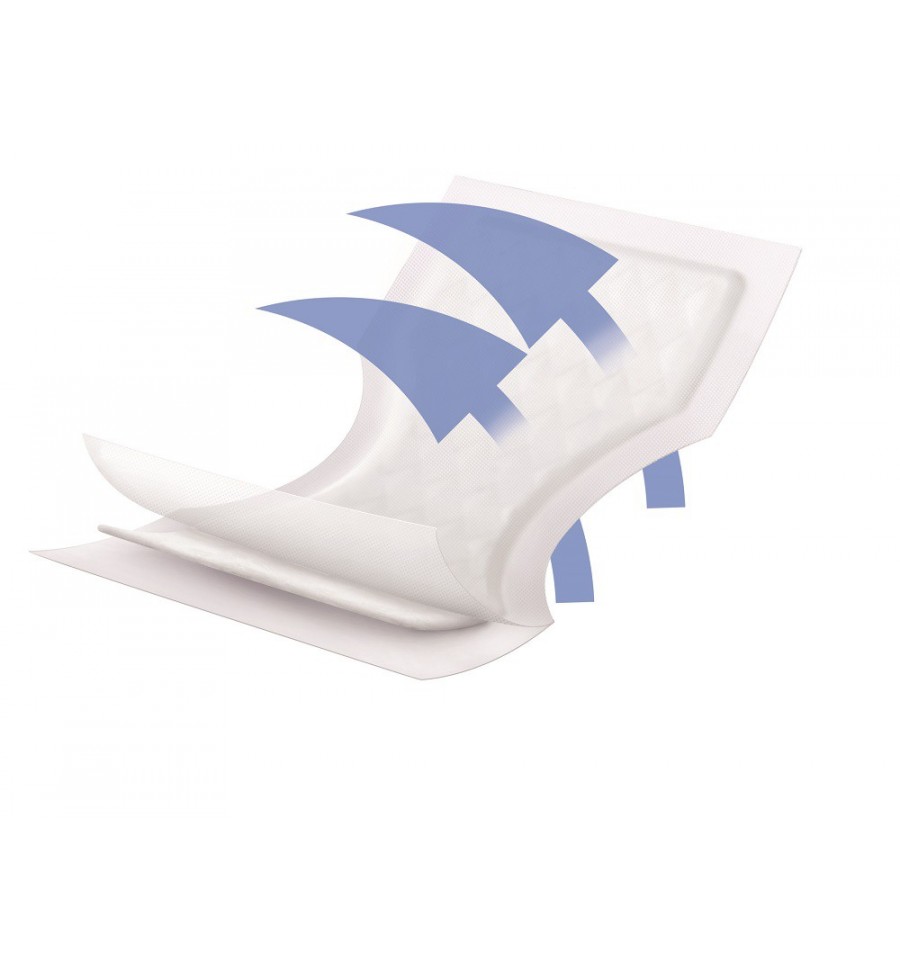 Gélová vrstva urýchlo absorbuje tekutinu, udržiava vlhkosť vo vnútri a neutralizuje zápach.