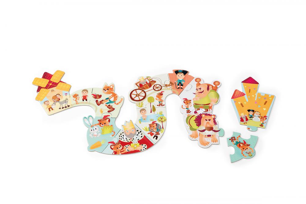 Ku skladaniu tohto puzzle sú potrební dvaja: jeden, kto číta a jeden, kto počúva. Čitateľ číta pribalený príbeh o Kocúrovi v čižmách. Poslucháč príbeh počúva a zároveň skladá puzzle, ktoré zobrazuje dej rozprávky. Puzzle sa ukladá do tvaru vlnovky.