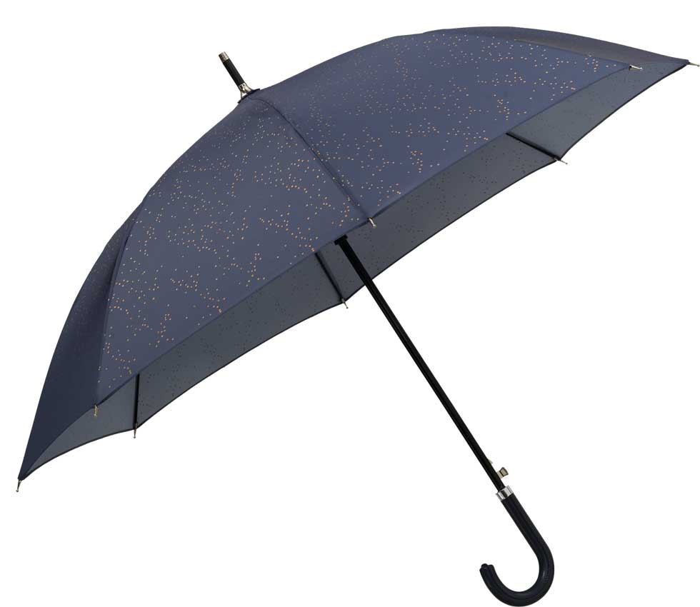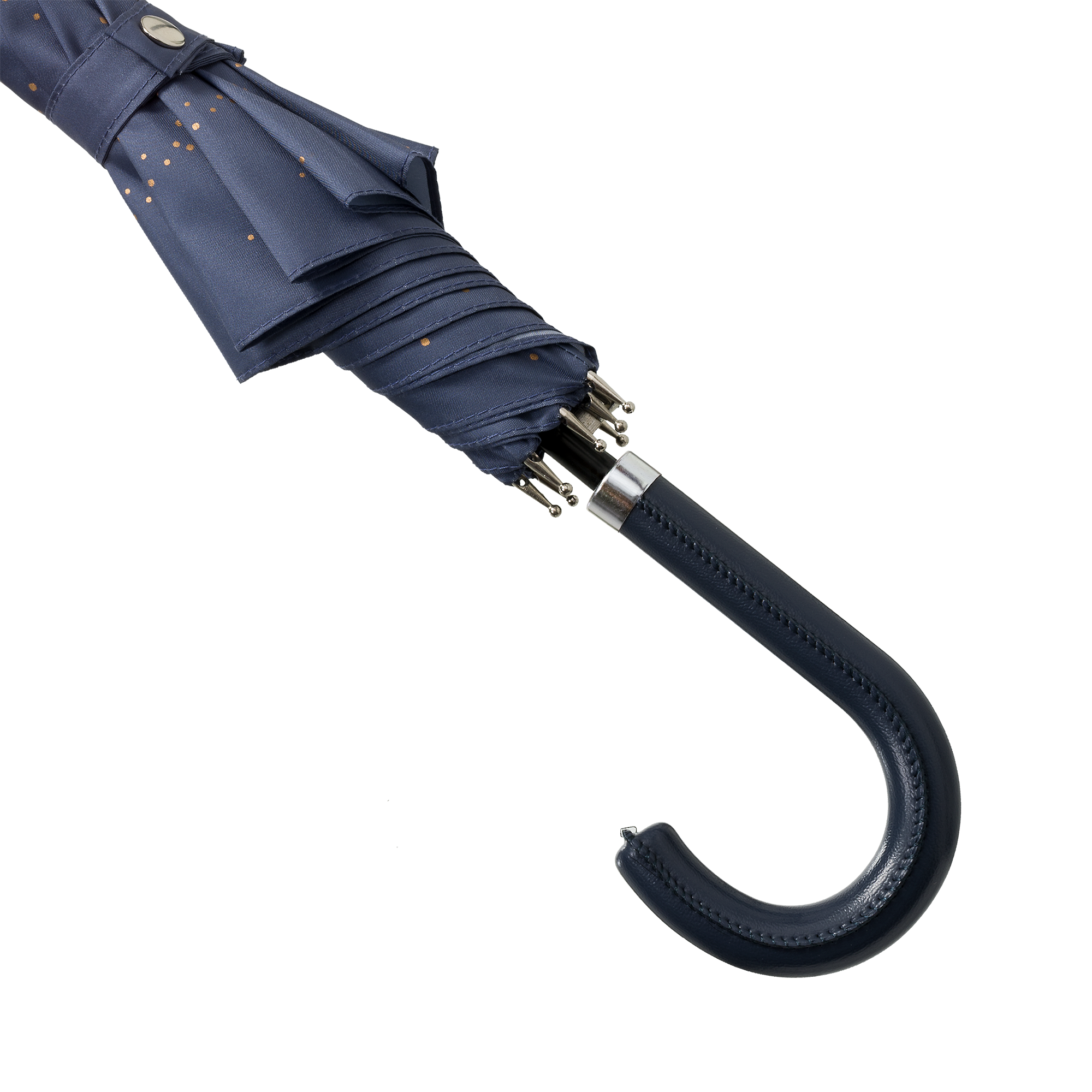 Dáždnik s rúčkou a bezpečnostným Velcro systémom uzatvárania, vyrobený z recyklovaného polyesteru.