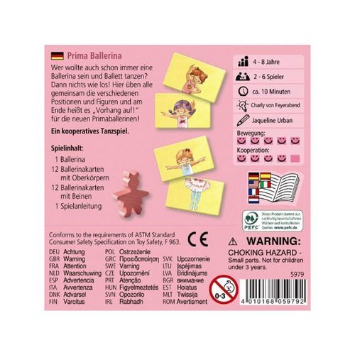 Kooperatívna pohybovo – tanečná hra pre deti je hra rozvíjajúca pamäť, postreh, komunikáciu, pohybové zručnosti a hrubú motoriku. Hra obsahuje karty balerín. Jedna karta zobrazuje vrchnú polovicu tela od hlavy po pás a druhá karta spodnú polovicu tela od pása nadol. Hráči odkrývajú postupne dvojice kariet a napodobňujú zobrazené baletné figúry. Zároveň rozvíjajú pamäť a postreh, pretože musia najskôr napodobniť všetky predchádzajúce figúry, čo podporuje pohyb a rozvoj hrubej motoriky.