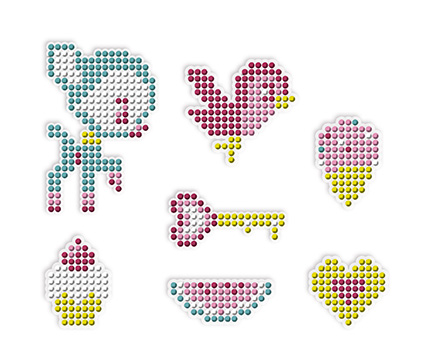 Kreatívna sada Výroba nálepiek Pixel obrázky s kryštálikmi obsahuje 5 nálepiek na dotvorenie, ktoré treba dozdobiť a dotvoriť dolepovaním krásnymi farebnými štrasovými kamienkami, balenie obsahuje 5 nálepiek a 750 ks krásnych kryštálikov.