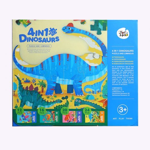 Úžasný set, ktorý obsahuje 4 rôzne puzzle dinosaurov v jednom balení.: Pterosaurs (12ks), Mosasaurus (16ks), T-Rex (20ks) a Brachiosaurus (24ks).