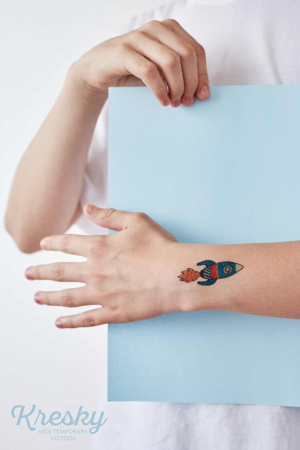 Dočasné tetovačky neaplikujte na citlivú pokožku, v blízkosti očí alebo v prípade alergie.