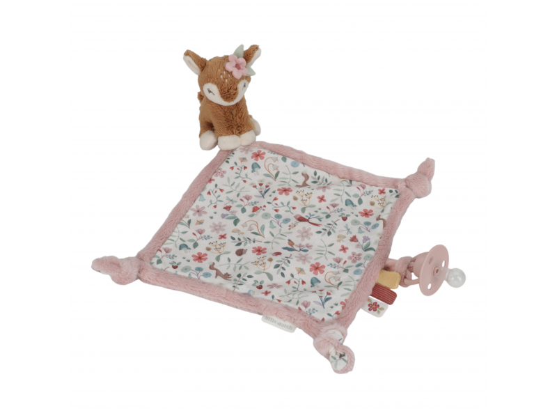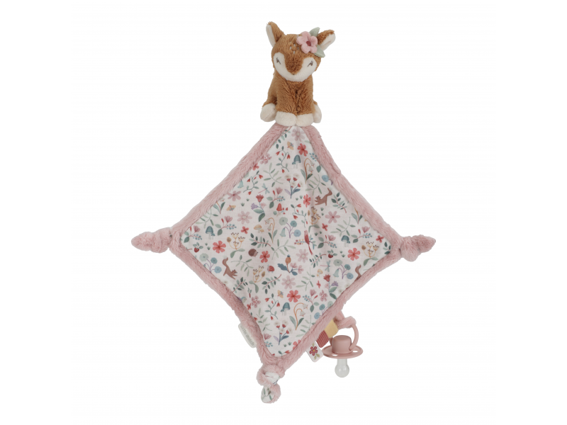 Plyšový maznáčik s nežnou srnkou a úchytom pre cumlík láka na hranie aj maznanie. Maznáčik je vyrobený z veľmi jemného a príjemného materiálu a je ideálny ako spoločník do postieľky pre pokojné zaspávanie.