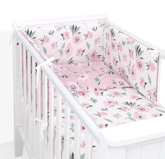 Krásna 3-dielna posteľná bielizeň pre batoľatá obsahuje mantinel 80×30 cm a obliečky na vankúš 40×60 cm a prikrývku 120×90 cm.