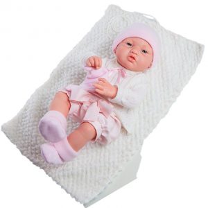 Zábavná, realisticky pôsobiaca a samostatne sediaca bábika Heli Paolita je skrátka neprehliadnuteľná. Vyniká roztomilými ružovými froté šatkami bez rukávov a bosými nôžkami. Krátke blond vlásky ma prikryté rozkošným bielo-ružovým klobúčikom. Pochádza z dielne španielskej značky Paola Reina, ktorá všetky svoje bábiky vyrába ručne.