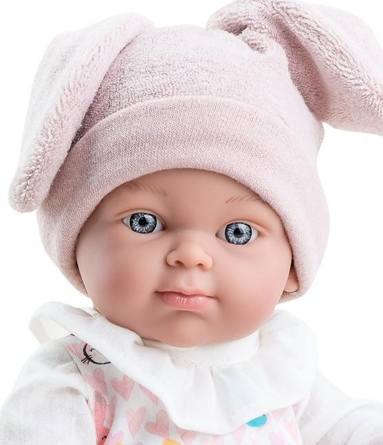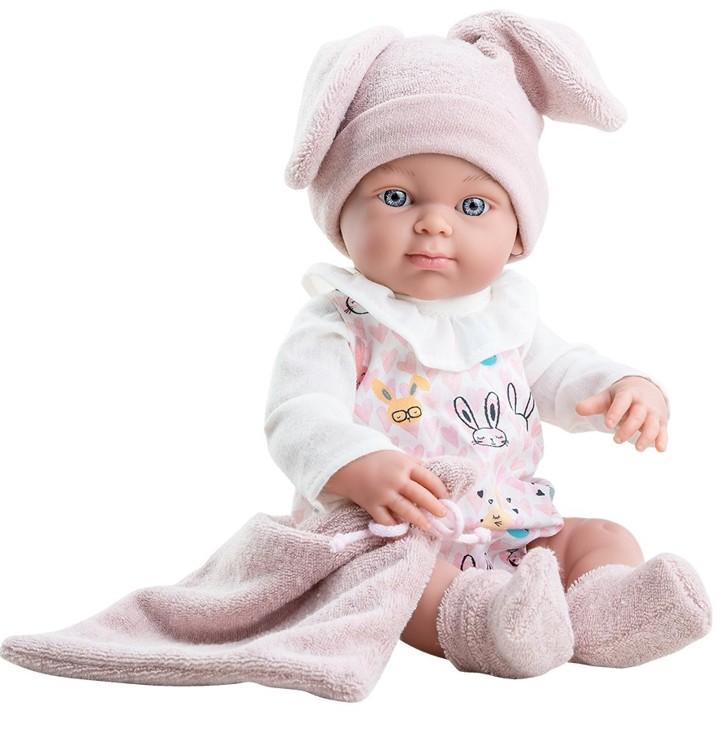 Roztomilá realistická bábika, dievčatko Minipikolina v čiapočke s dlhými uškami, je vyrobená v Španielsku vo firme Paola Reina. Celé telíčko je z kvalitného vinylu prepracované do všetkých detailov vrátane pohlavia. Má nežmurkajúce modré očká. Bábika je dlhá 32 cm, je oblečená v bielej blúzke a farebnom overale bez rukávov a nohavíc. Na hlavičke má teplú čiapočku s “dlhými uškami” a na nohách rovnako replé ponožky. Bábika má z rovnakej látky ešte uteráčik.