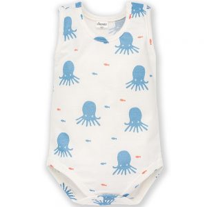 Detský letný overal v krásnej letnej farbe s malým obrázkom. Overal má patentky aj medzi nožičkami pre rýchlu výmenu plienočky.