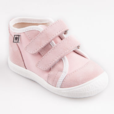 Detská obuv v štýle ” tenisiek ” s praktickým zapínaním na “suchý zips” určená pre deti cca do 6 rokov. Detské tenisky sú ľahké, pružné vyrobené v kombinácii textilu “keper”zo 100% – nej bavlny a prírodnej  kože. Tieto materiály zabezpečujú priedušnosť a dokonale sa prispôsobujú tvaru nohy. Členkový strih, výstuž päty a anatomicky  tvarovaná vkladacia stielka zabezpečia dieťaťu pohodlnú a bezpečnú chôdzu a podporujú zdravý vývoj detskej nohy. Pri výrobe anatomickej vkladacej stielky z prírodnej podšívkovej kože je použité len disperzné (vodou riediteľné) lepidlo, teda lepidlo bez obsahu škodlivých organických rozpúšťadiel. Obuv ma certifikát o zdravotnej a hygienickej nezávadnosti. Okrem toho bola posudzované komisiou zloženou z ortopéda, detského lekára, modelára a špecialistov na výrobu obuvi, na základe čoho získala licenciu na používanie ochrannej známky “Žirafa” a “Česká kvalita”.Detské tenisky sú určené predovšetkým na voľnočasové aktivity dieťaťa v exteriéri pri suchom počasí. Pri daždivom počasí je vhodné tenisky ošetriť vodeodolným sprayom na textil a brúsenú kožu.