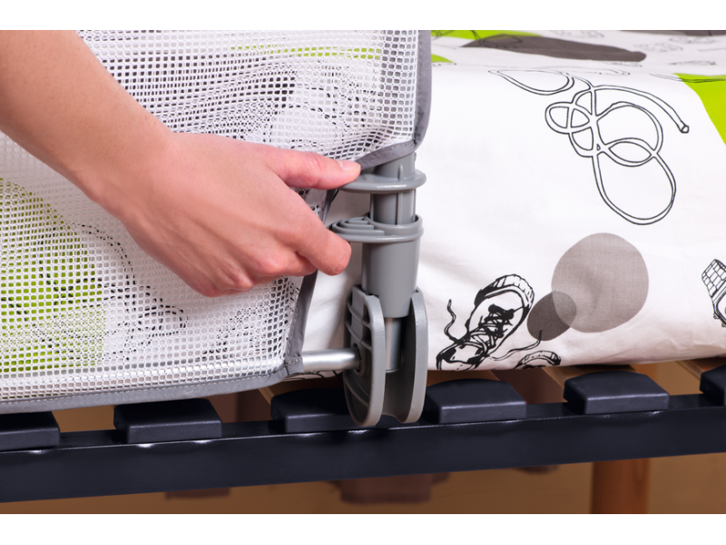 Zábrana na posteľ Safety 1st chráni dieťa pred pádom z postele a uľahčuje tak jeho prechod z detskej postieľky do klasickej postele. Zábrana sa ľahko inštaluje zasunutím pod matrac. Pevný hliníkový rám zaručuje stabilné a bezpečné použitie. Priehľadná sieť umožňuje dieťaťu výhľad z postele. Dĺžka zábrany je 90 cm.